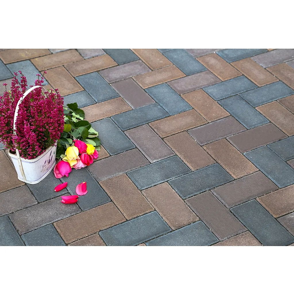 Element baza gard, Symmetrica, Gardeo, beton, caramiziu - gri, 380 x 220 x 160 mm